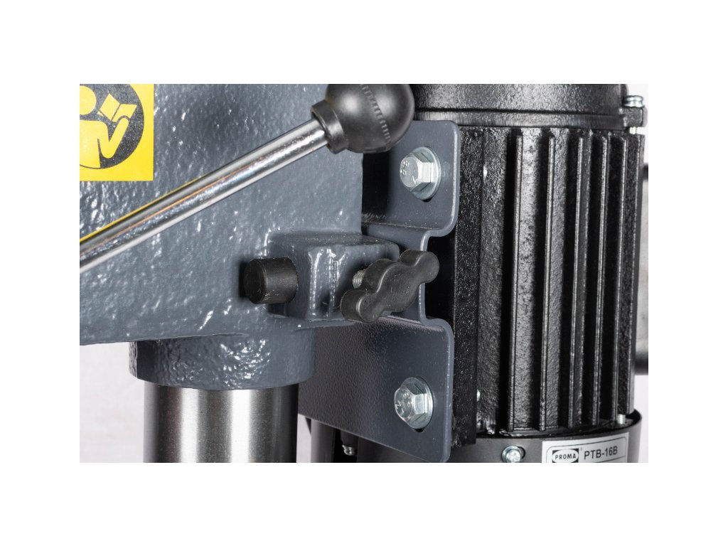 Stolní vrtačka PROMA PTB-16B/230 R je pro svou jednoduchou konstrukci a základní výbavu cenově výhodná stolní vrtačka, u které je převod síly z jednofázového 230V motoru na vřeteno zajištěn klínovými řemeny přes čtyřstupňové řemenice. Díky své výbavě a robustnímu motoru s litinovým tělem je vrtačka ideální pro kutily a výukové dílny (školící zařízení).