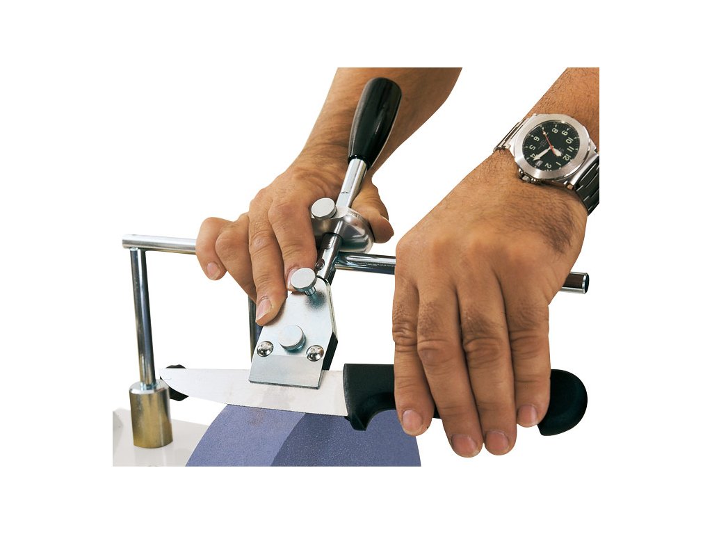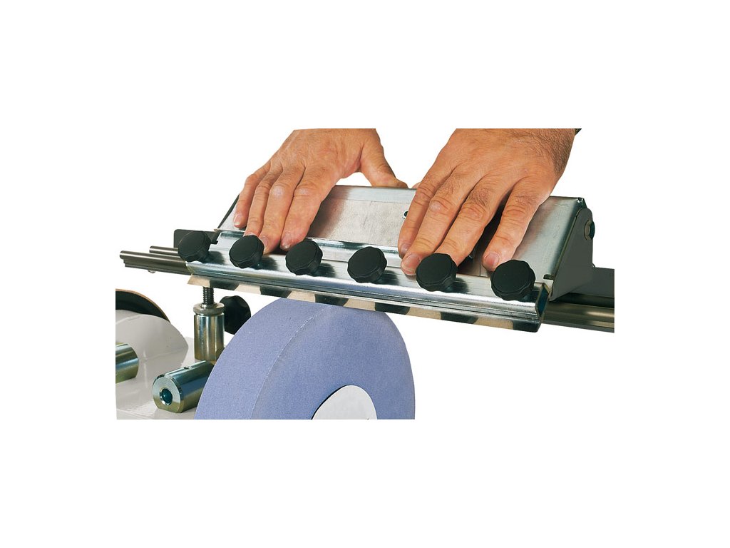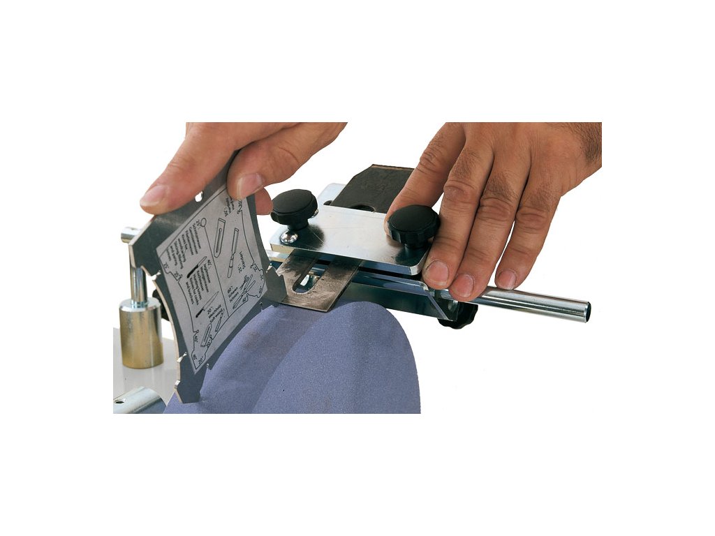 - Úhlová měrka pro nastavení správného brusného úhlu