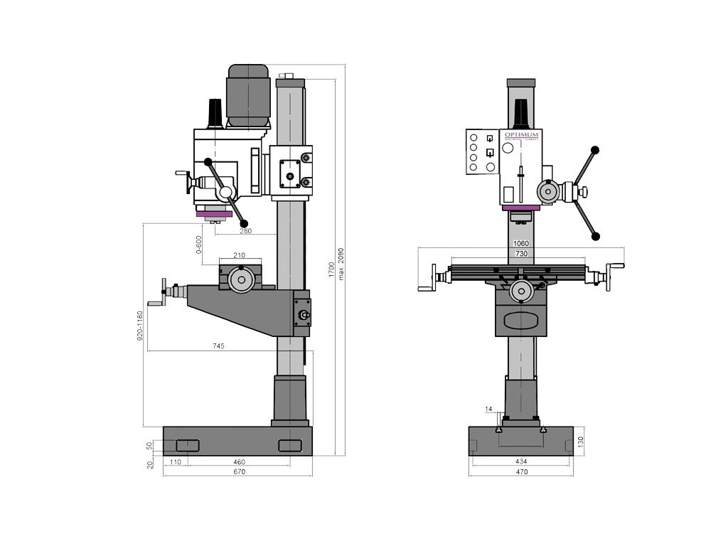 - Výškově přestavitelná vrtací hlava i křížový stůl
