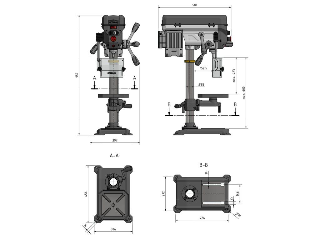| Max. vzdálenost vřetene a stolu: | 423 mm |