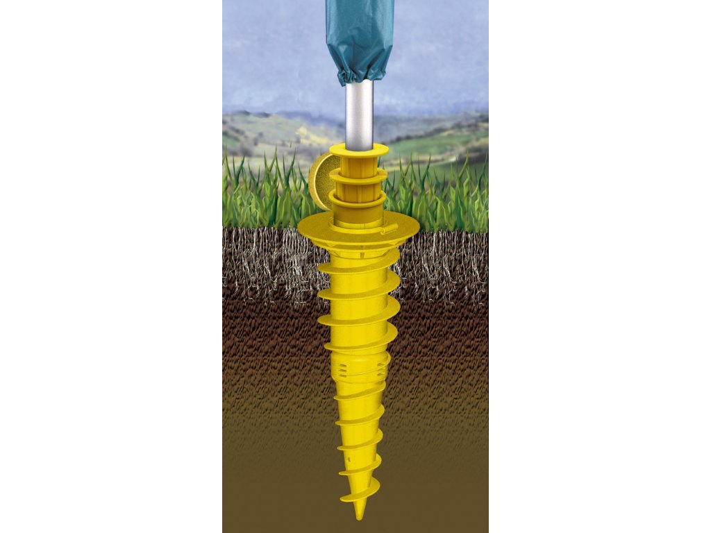 Dvojitý zemní šroub - dvoudílný plastový zemní šroub s redukcí pro zahradní slunečník. V zemi předvrtáte vrtačkou otvor, do kterého "zašroubujete" zemní šroub. Do něj potom zasunete nosnou tyč sušáku. Tento model zemního šroubu umožňuje zasunutí tyče o průměru 40 - 55 mm. Šroub má víčko, které po vysunutí sušáku šroub uzavře, takže do něj nezatéká voda.