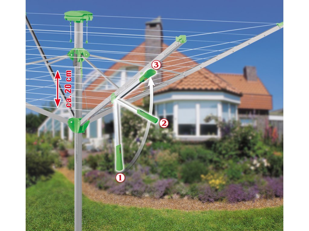 Od této chvíle můžete jednoduše díky novému automatickému napínáku "NovaLift" otevřít Váš sušák prádla pouze jednou rukou. Díky vestavěnému ochrannému obalu budete mít sušící šňůry vždy připravené k použití a hlavně čisté, takže na prádle nehrozí žádné otisknuté čáry a pruhy. Před otevřením sušáku se vak jednoduše "vtáhne" do nosné trubky a po složení sušáku se zase "vytáhne". Díky tomu nemusíte řešit, kam ochranný vak uschovat po dobu sušení.