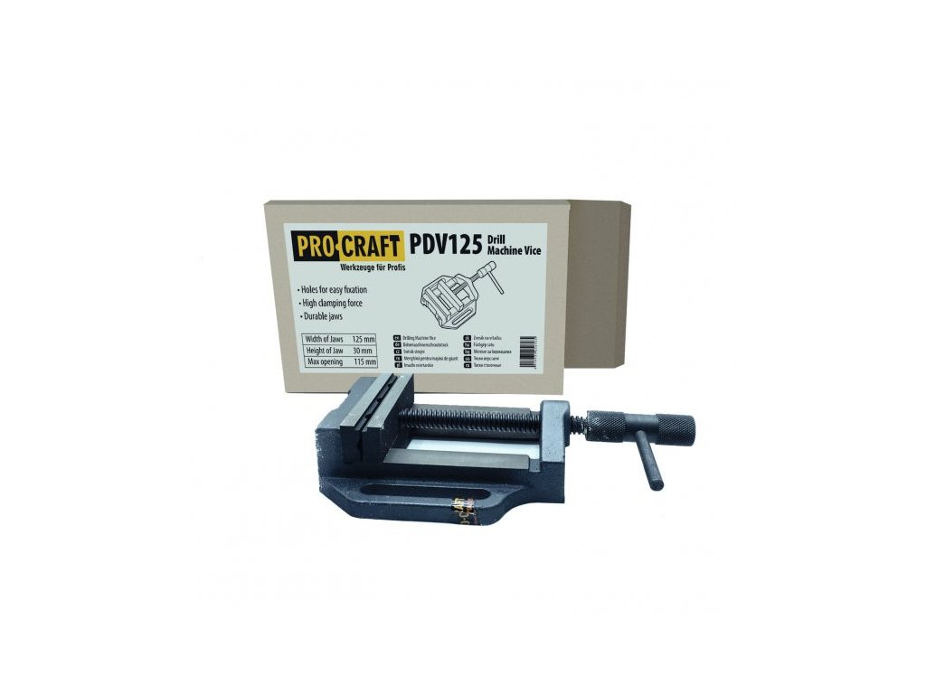 Procraft PDV125 je přesný a spolehlivý svěrák určený především pro použití pod vrtačkou. Jeho stabilní konstrukce, přesné vedení čelistí a jednoduché upevnění na stůl z něj dělají nepostradatelného pomocníka pro každého, kdo potřebuje precizní sevření obrobku při vrtacích a jemných dílenských pracích.