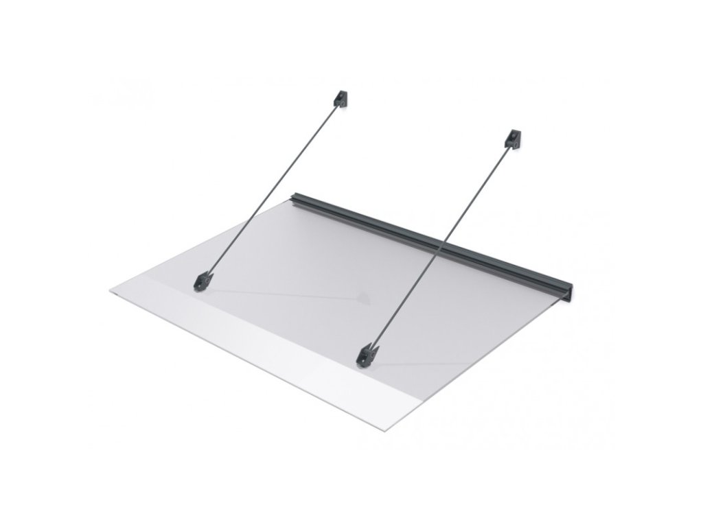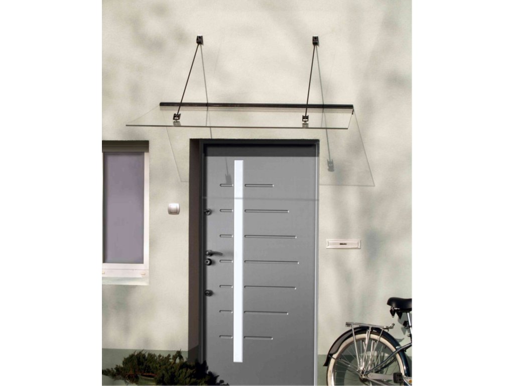 Stříška nad dveře vyrobená z práškově lakovaného hliníku. Na rozdíl od stříšek s plastovou konstrukcí hliníková konstrukce perfektně odolává vlivům počasí, i po letech je pevná a stabilní. V zimě mrazem nekřehne a ani na silném letním slunci nedochází ke změnám barvy. Stříška je zasklená úplně průhledným čirým plexisklem 10 mm.