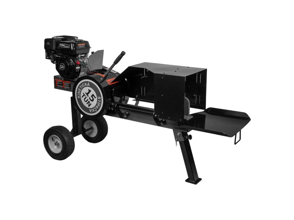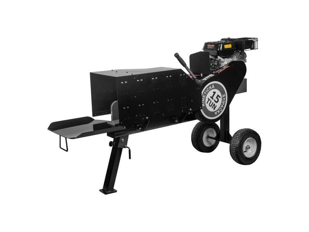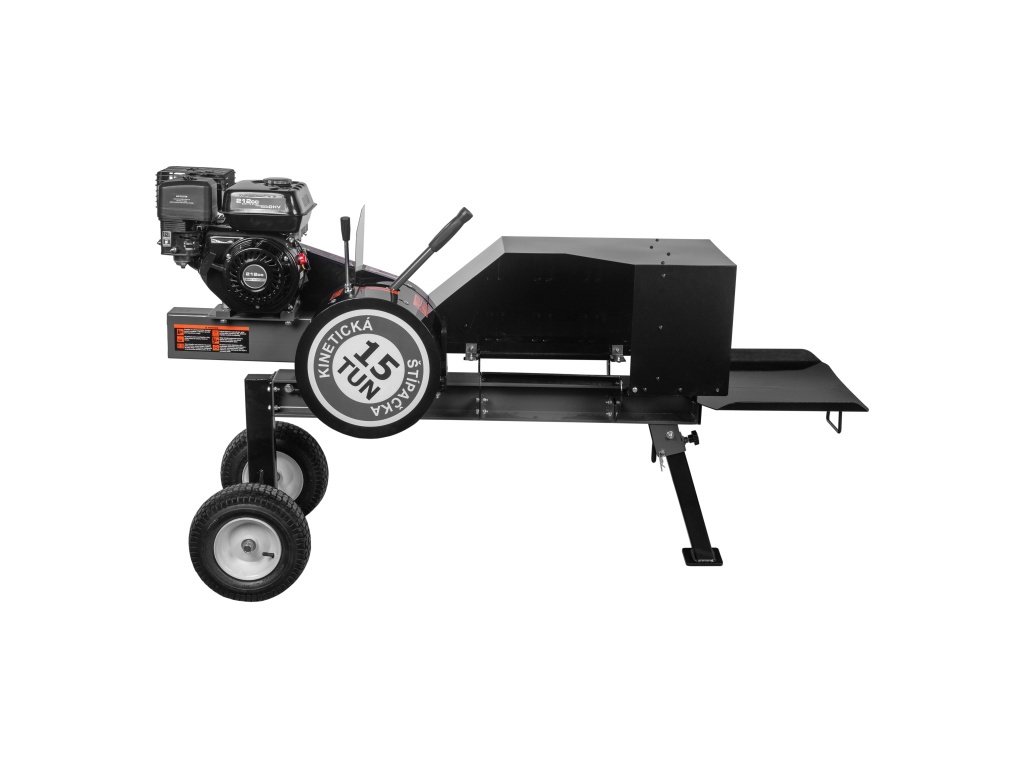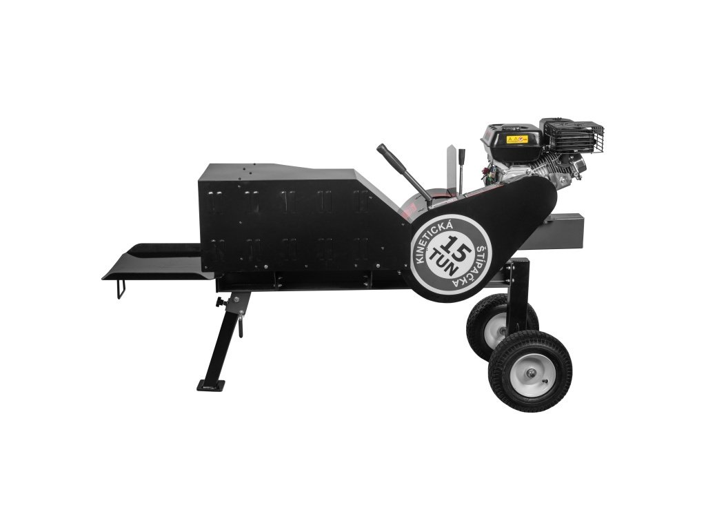 KSP-15/520G Motorová kinetická štípačka na dřevoKSP-15/520G Motorová kinetická štípačka na dřevo je mechanické zařízení, kde je štípací energie předána za pomoci spalovacího motoru, setrvačníku a převodového mechanizmu téměř najednou a působí na poleno obdobně jako při ručním sekání, ale bez vaší námahy a se stálým kinetickým tlakem. Mechanizmus se okamžitě vrací zpět a tím odpadá čas strávený plněním olejového pístu a jeho zpětné přepouštění. Jedná se o geniální systém s vyšší rychlostí a menšími nároky na údržbu a servis, to vše při dodržení nejpřísnějších norem na bezpečnost a ochranu zdraví.