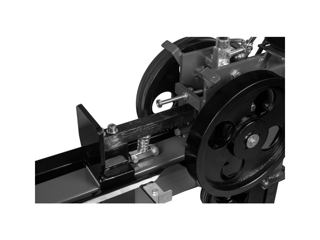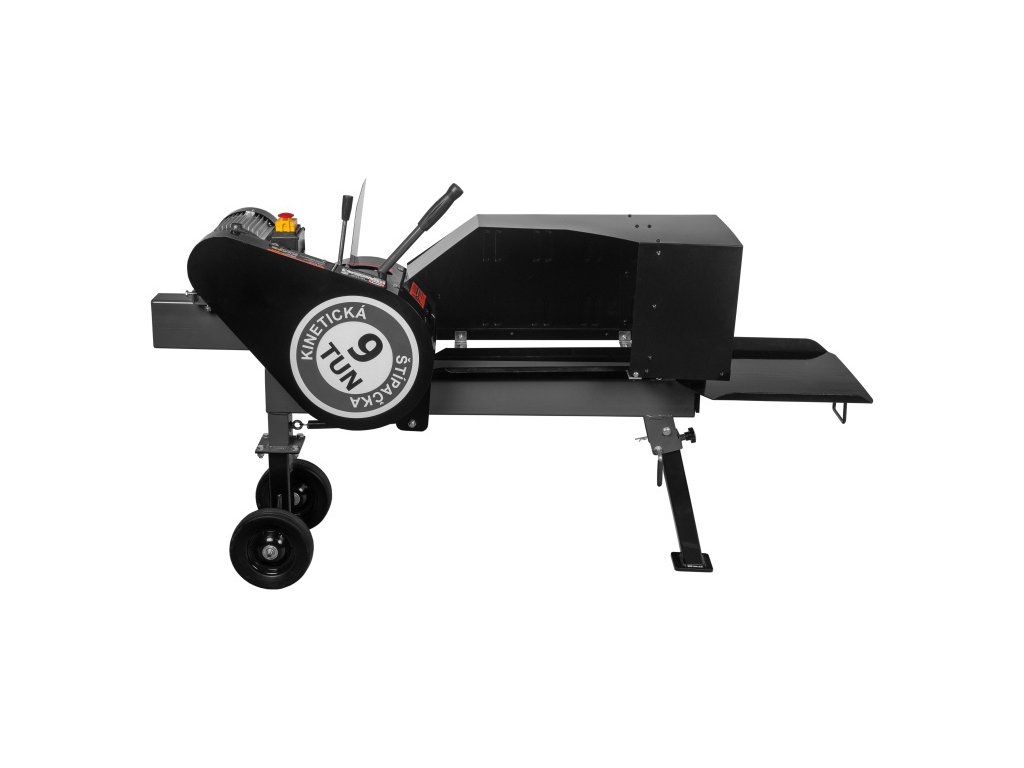 KSP-9/520E Kinetická štípačka na dřevo je mechanické zařízení, kde je štípací energie předána za pomoci motoru, setrvačníku a převodového mechanizmu téměř najednou a působí na poleno obdobně jako při ručním sekání, ale bez vaší námahy a se stálým kinetickým tlakem. Mechanizmus se okamžitě vrací zpět a tím odpadá čas strávený plněním olejového pístu a jeho zpětné přepouštění. Jedná se o geniální systém s vyšší rychlostí a menšími nároky na údržbu a servis, to vše při dodržení nejpřísnějších norem na bezpečnost a ochranu zdraví.
