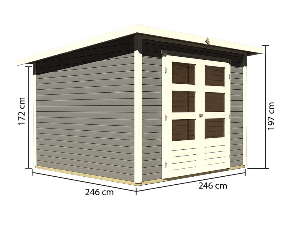 Tento model domku dodáváme v profesionálním nátěru KARIBU (odstín terragrau RAL 0604005):