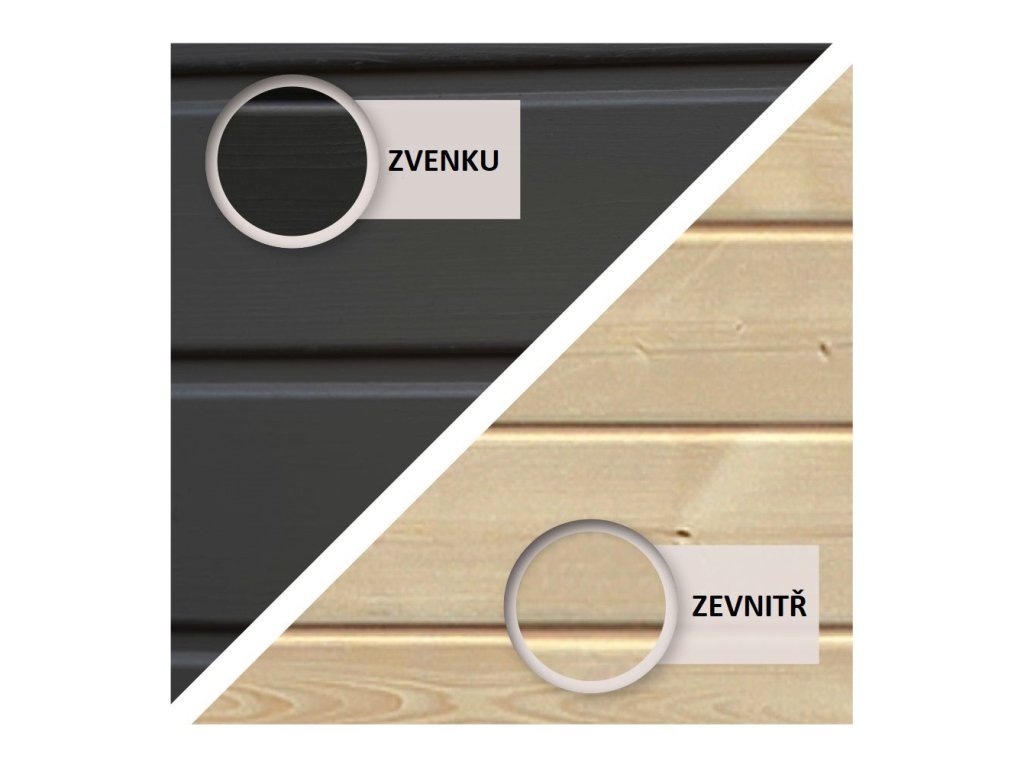 - Profesionální KARIBU FARBSYSTEM - dřevěné profily jsou z vnější strany již ve výrobě opatřeny kvalitní vodoodpudivou barvou, která ochrání dřevo před vlivem UV záření a počasí. Vnitřní strana zůstává vždy v přírodním neošetřeném stavu. KARIBU FARBSYSTÉM sebou nesou jistou počáteční investici, ale v konečném důsledku velkou úsporu času, práce i peněz.