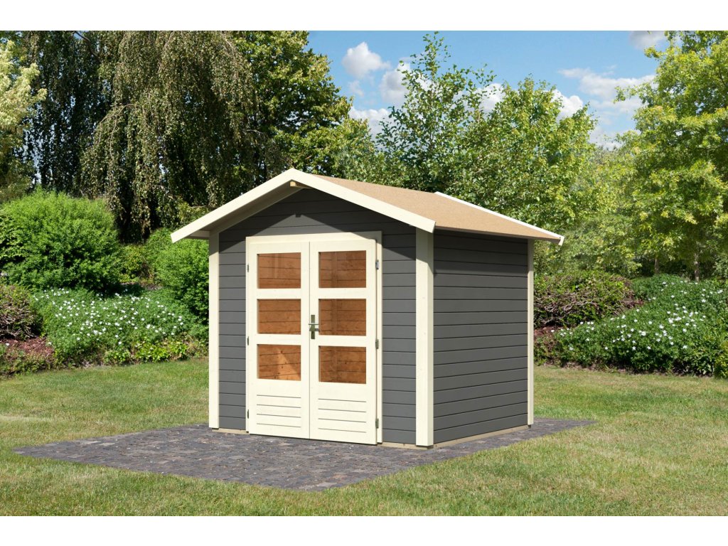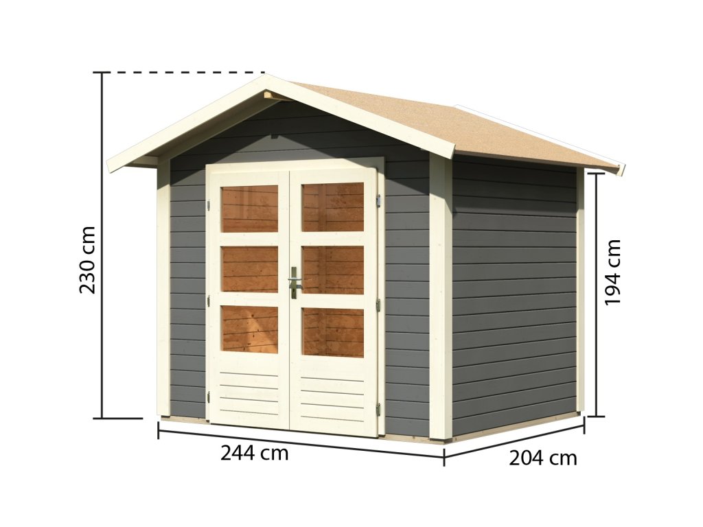Tento model domku dodáváme v profesionálním nátěru KARIBU (odstín terragrau RAL 0604005):