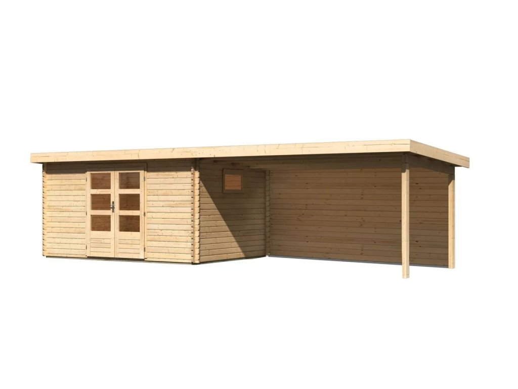 dřevěný domek KARIBU TRITTAU 5 + přístavek 440 cm včetně zadní stěny (10062) natur LG4198
