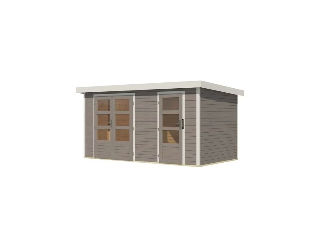 Tento model domku dodáváme v profesionálním nátěru KARIBU (odstín světle šedé RAL 360 60 05):