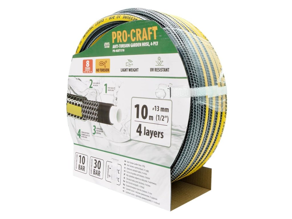 Černo-žlutá zahradní hadicí Procraft PR-4KAT1310 je zkrátka spolehlivým a odolným pomocníkem pro každého zahrádkáře, který ocení dlouhou životnost a bezstarostné používání.
