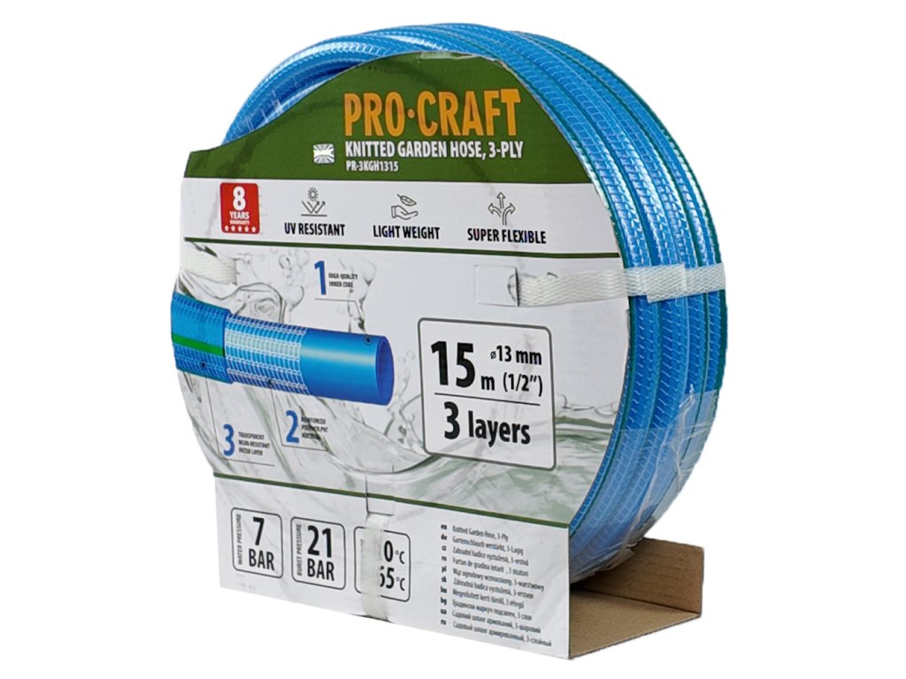 Modrá zahradní hadice Procraft PR-3KGH1315 3 vrstvy, 1/2" 15m