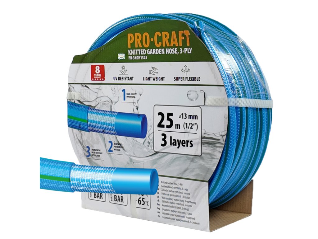 Modrá zahradní hadice Procraft PR-3KGH1325 3 vrstvy, 1/2" 25m