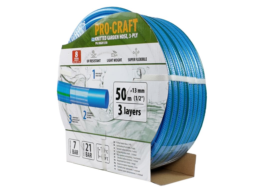 Modrá zahradní hadice Procraft PR-3KGH1350 3 vrstvy, 1/2" 50m
