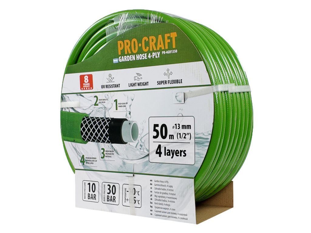 Zelená zahradní hadice Procraft PR-4GH1350 4 vrstvy, 1/2" 50 m | PR-4GH1350