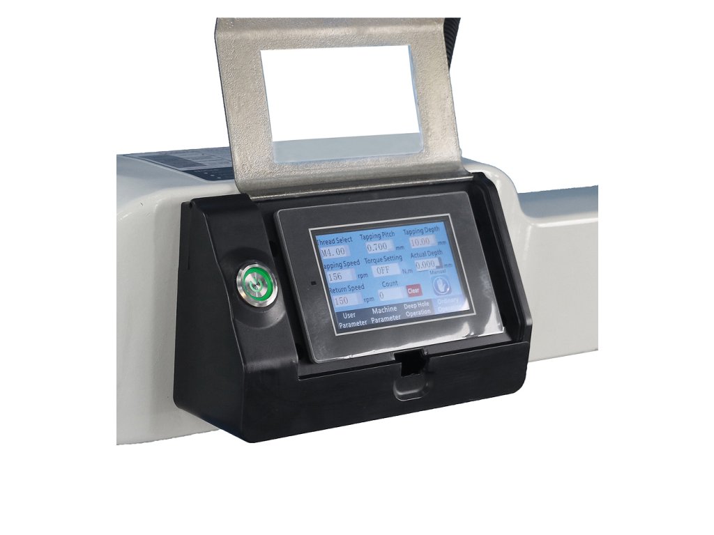 - Automatický provoz: Po dosažení nastavené hloubky řezu se stroj automaticky přepne do zpětného chodu - ideální pro závitování více slepých otvorů