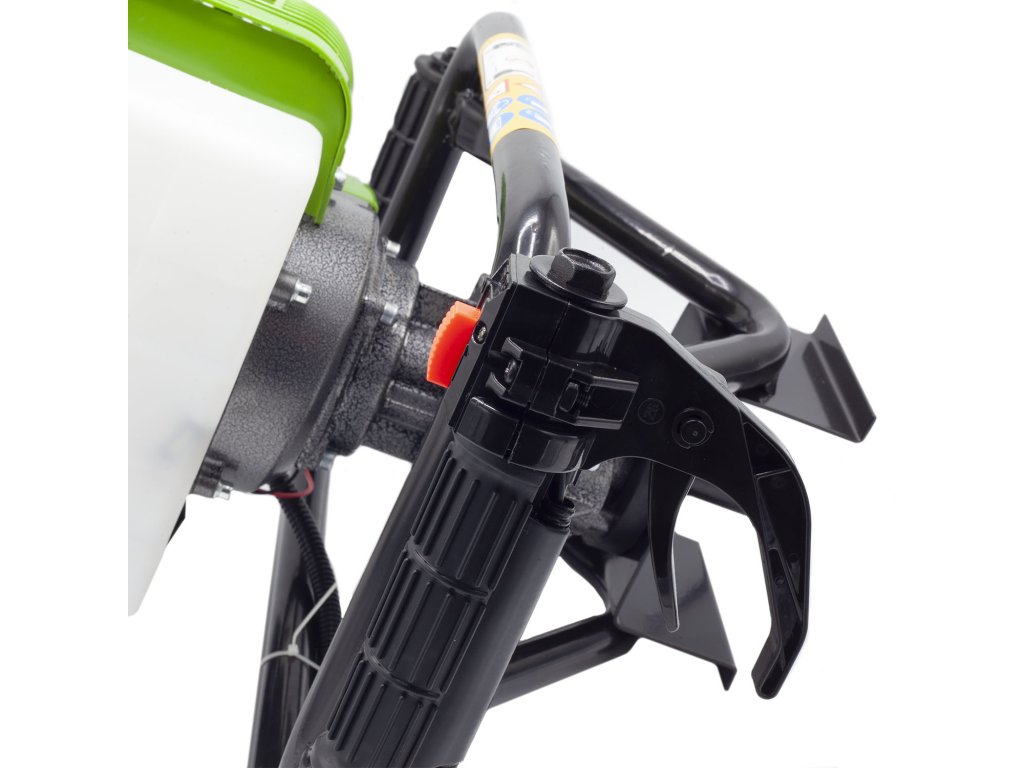 Benzínový pohon – nezávislost na elektřině: Vrták je poháněn benzínovým dvoutaktním motorem, což znamená maximální volnost pohybu. Není nutné řešit přívod elektrické energie, prodlužovací kabely ani dostupnost zásuvky. Ideální řešení pro práci na zahradě, na poli, ve vinohradech nebo v místech bez elektřiny.