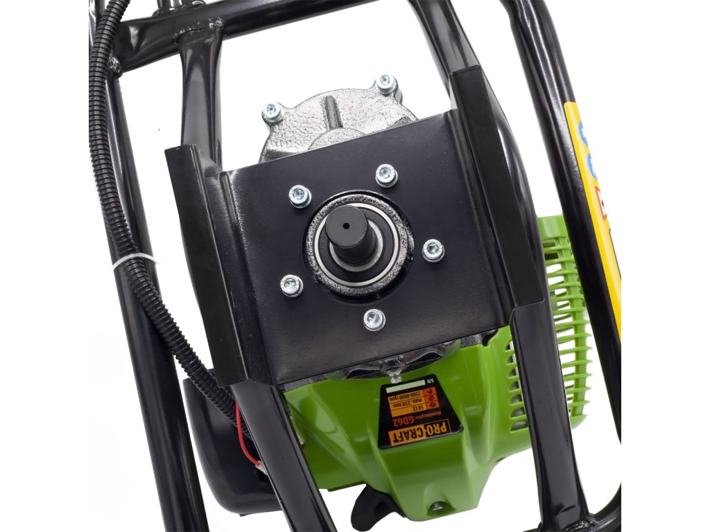 Samostatné provedení vrtáku: Zemní vrták Procraft GD62bn se prodává bez vrtáku (nástroje). Vrtací nástroje nejsou součástí balení a lze je dokoupit samostatně podle konkrétních potřeb. V nabídce jsou různé průměry vrtáků (80, 150, 200 a 250 mm), což umožňuje přizpůsobit stroj konkrétní práci – od sázení rostlin až po vrtání otvorů pro plotové sloupky.